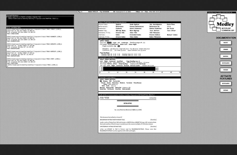 Medley provides a rich palette for displaying information. To highlight its flexibility we maintain a gallery of screenshots. It shows some of the applications implemented within Medley and provides insight into how some users have customized their user interface. In addition you can find more whimsical drawings created within the Medley environment.